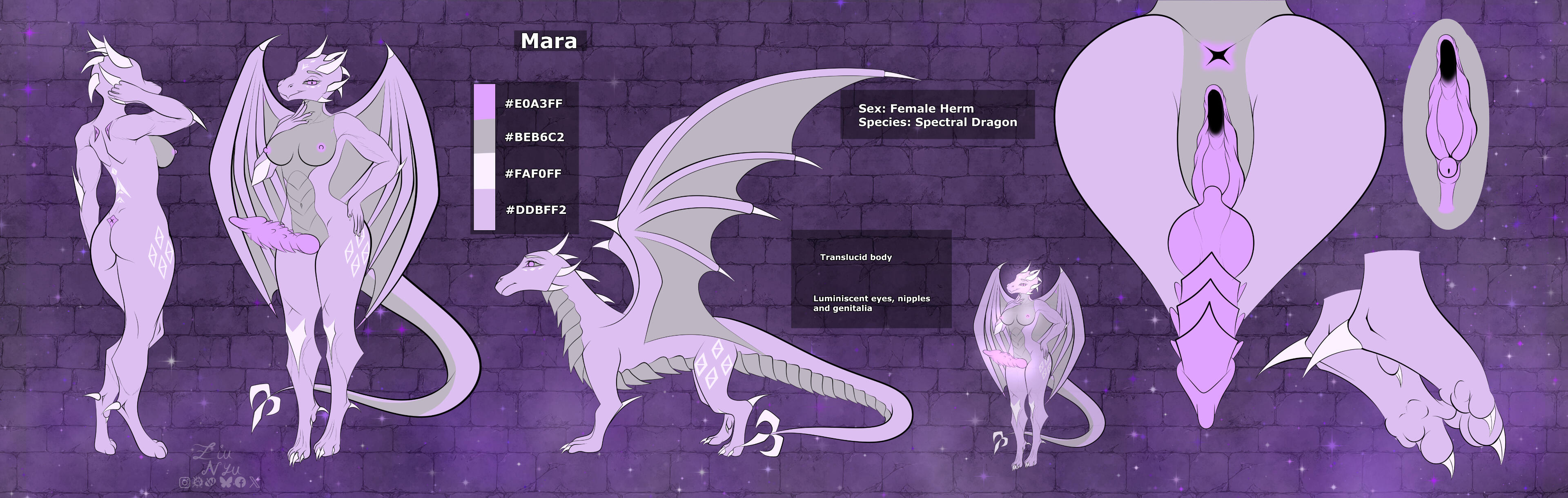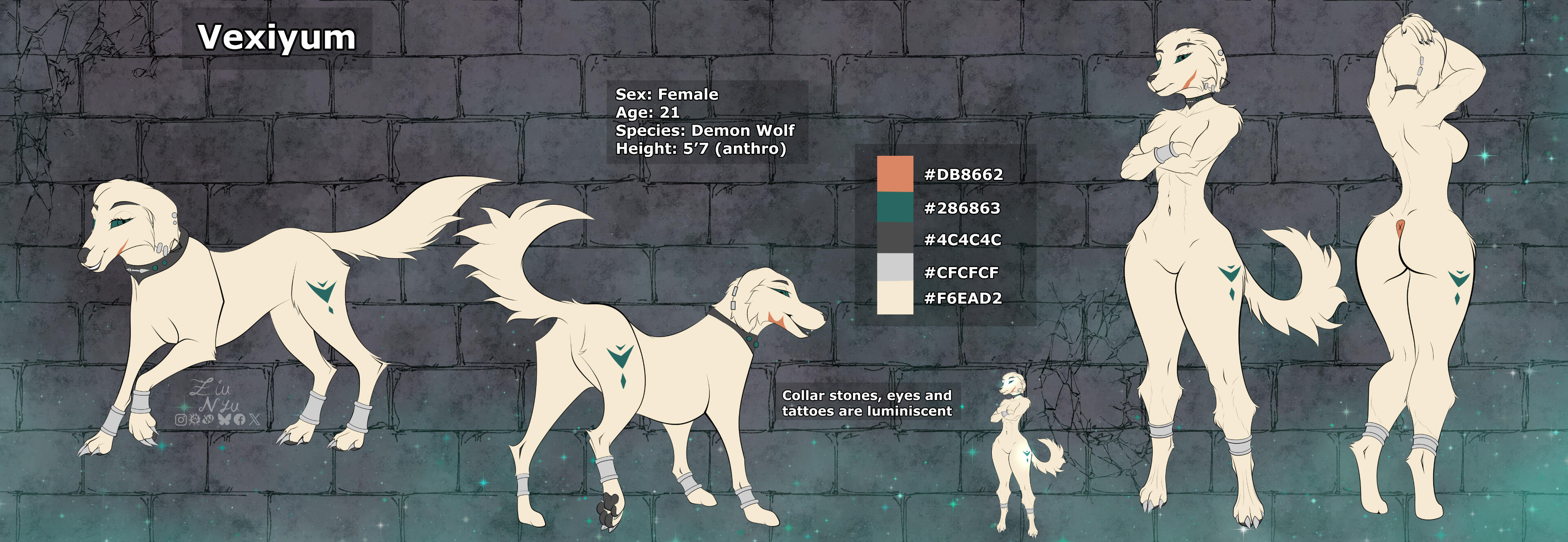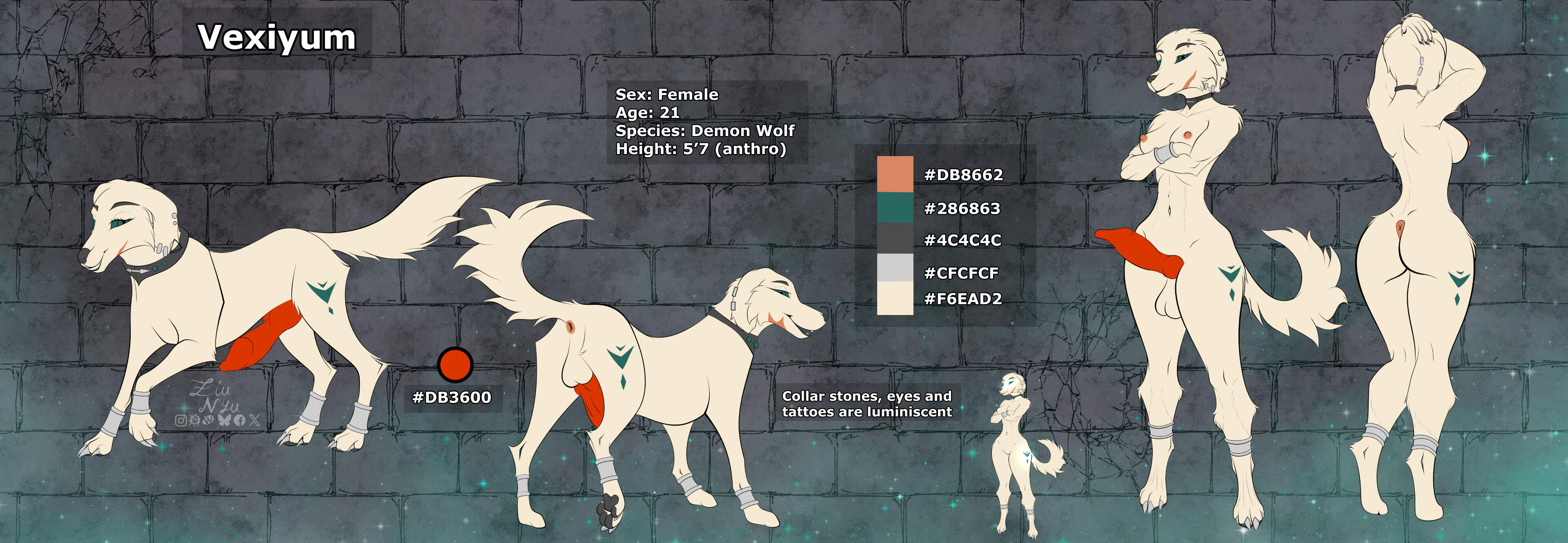 Reference sheets start on 80 usds, that prices includes front and back view, sfw and nsfw alts, and some props like paws, eyes, color details, info panel and a background.Any extra view angle, detail, prop, different form view, alts, Clothed variants or addons, or complexity adds to the price.Simpler sheets can be negotiated.